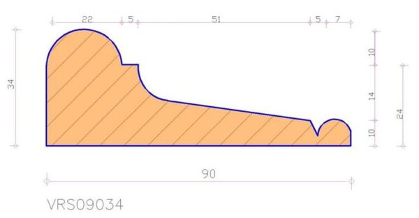 Grenen (gelam/gevin) Sierlijst afm 34 x 90 mm L=4800mm