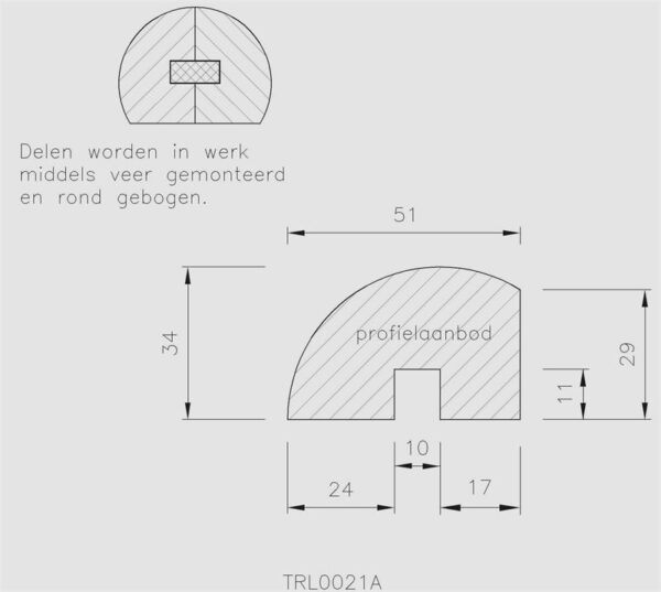 VRL03570 – Halfrond lijst 35x70mm Maatwerklijst