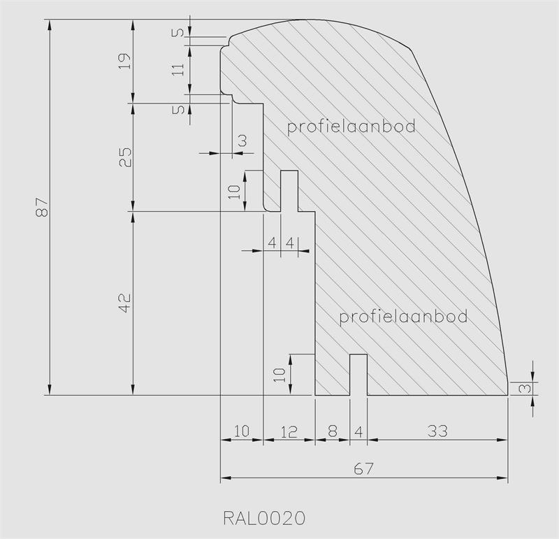 Home MAATWERK Tekeningen voor Architraven - Plinten - Gootlijsten - Kroonlijsten - diverse lijstwerk. Randlijst Maatwerktekeningen RAL0020 – Randlijst